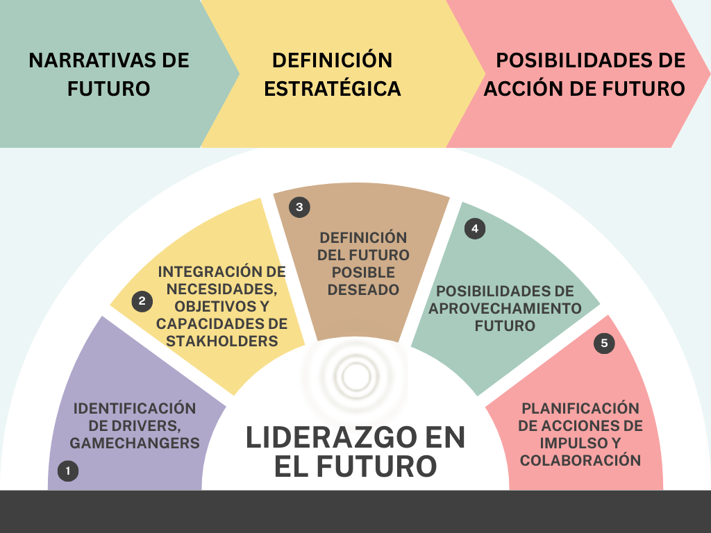 El liderazgo puesto en el futuro es cuestión de mirar más allá, hacia adelante, conocer los posibles, para generar una estrategia de cómo convertir ese futuro deseado en probable; adelantarse a lo que pueda ocurrir nos da capacidad de adaptabilidad y resiliencia creativa ante diferentes escenarios.